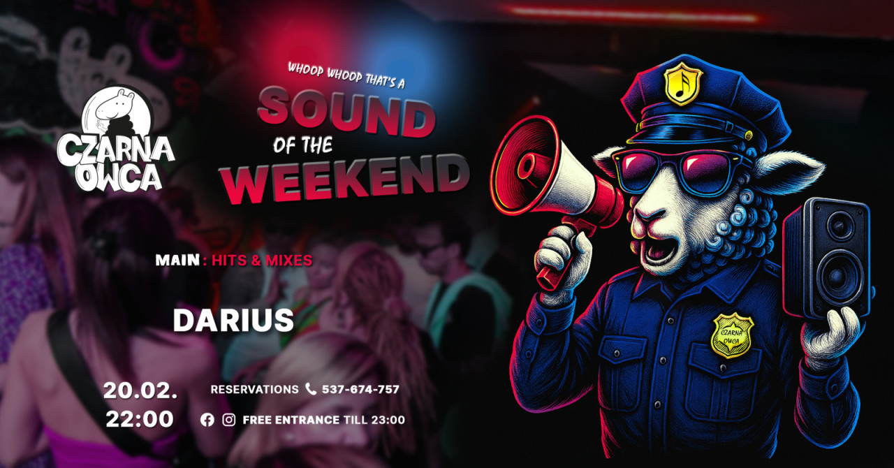 Whoop, Whoop That’s A Sound Of The Weekend, z tym okrzykiem wchodzimy w każdy piątek w weekendowe whoop, whoop. Bez nadzorców, bez zbędnych pytań, wjeżdżamy z sygnałami świetlnymi na suficie i mocnym uderzeniem z głośników w imprezę bez ograniczeń. Zapraszamy do czystej zabawy, Yes, indeed.![]()