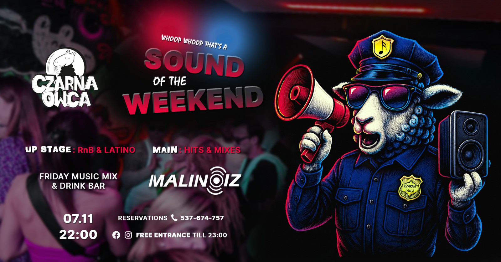 Whoop, Whoop That’s A Sound Of The Weekend, z tym okrzykiem wchodzimy w każdy piątek w weekendowe whoop, whoop. Bez nadzorców, bez zbędnych pytań, wjeżdżamy z sygnałami świetlnymi na suficie i mocnym uderzeniem z głośników w imprezę bez ograniczeń. Zapraszamy do czystej zabawy, Yes, indeed.wink