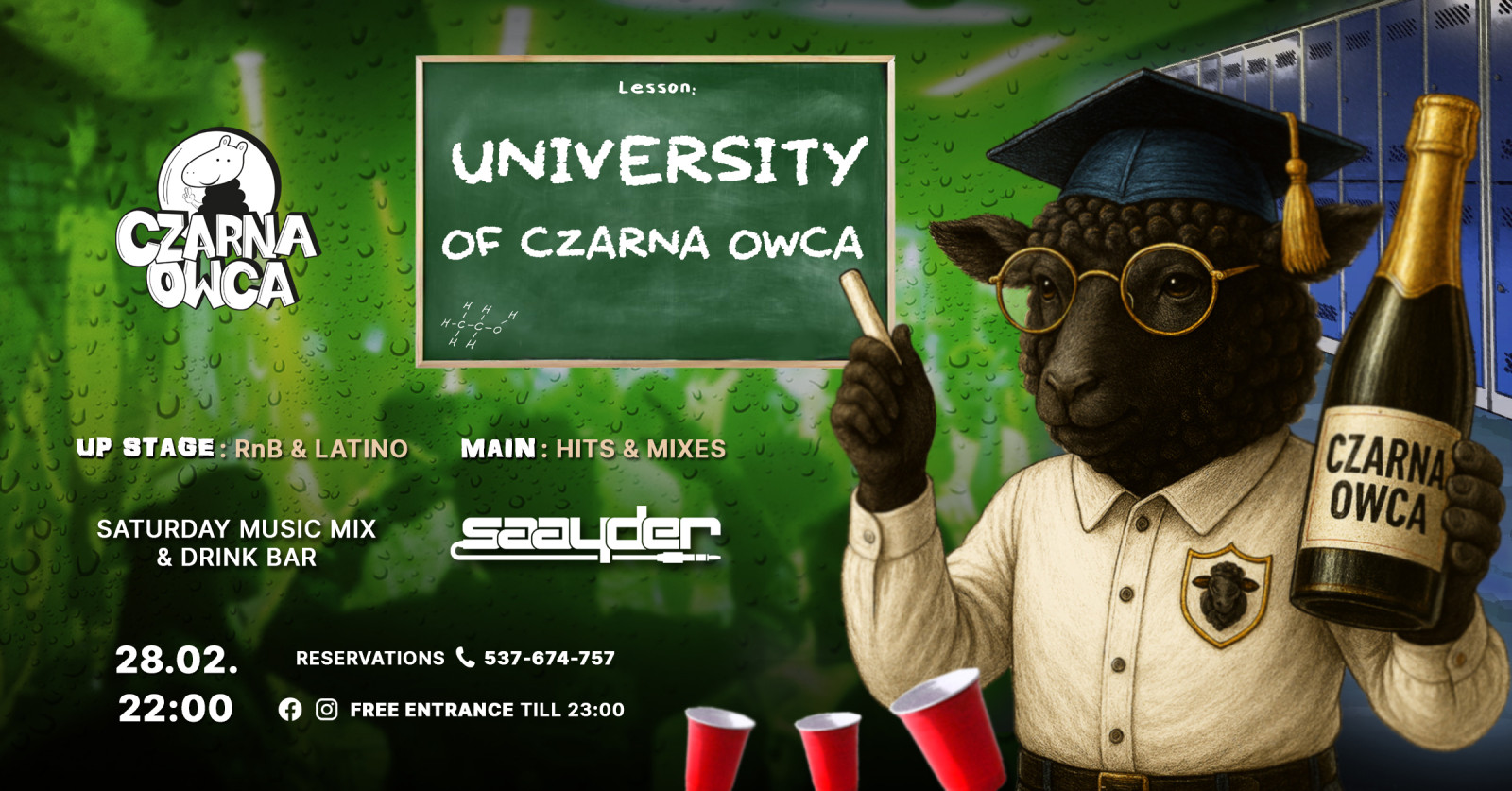 Jaka jest najlepsza lekcja w sobotę? Oczywiście, że lekcja najlepszego imprezowania. Czarna Owca zapewnia wszystko co potrzeba do właśnie takiej nauki.devil